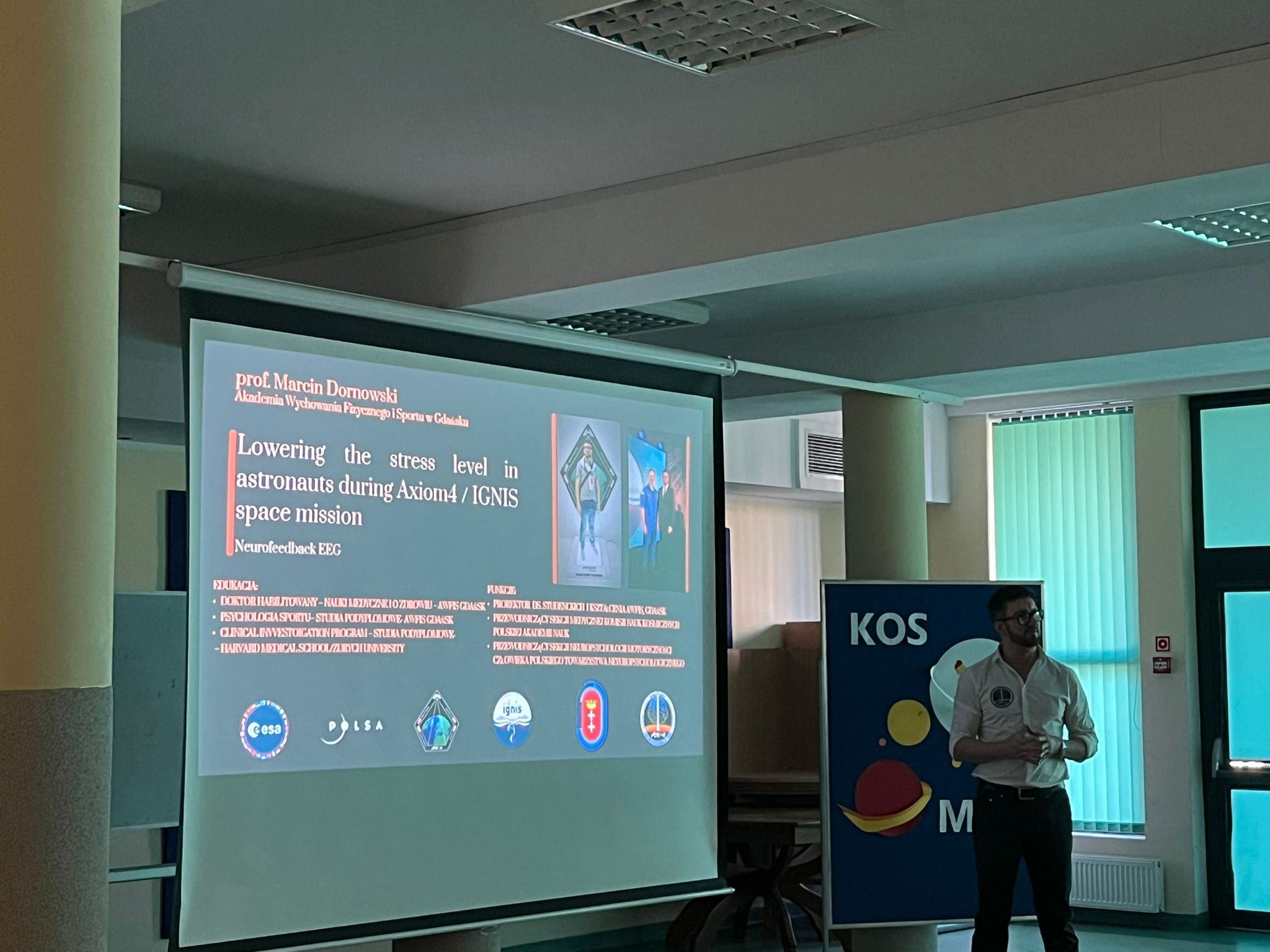 Opowiadał o eksperymencie naukowym , któremu przewodniczy i jaki był testowany na astronautach podczas tegorocznej misji kosmicznej IGNIS na Międzynarodowej Stacji Kosmicznej AXIOM- 4.