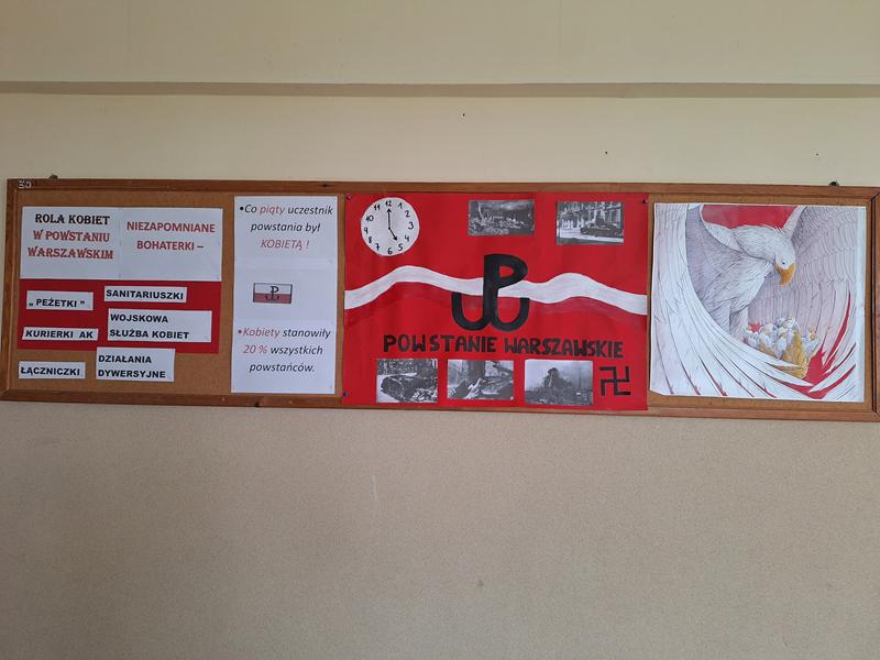 Uczniowie klas 8 uczestniczyli w projekcje,,BohaterOn''.W tym roku poświęcona była ona kobietom-uczestniczkom Powstania Warszawskiego. Ich rola była bardzo istotna. Były nie tylko łączniczkami, sanitariuszkami ale także mamami, siostrami, które każdego dnia toczyły walkę o przetrwanie swoje i rodziny. Były odważne, dumne, pełne poświęcenia i wiary. Młode i starsze  ,wszystkie gotowe umrzeć za Ojczyznę. Uczniowie zapoznali się z biogramami niektórych z nich i wykonali proporce upamiętniające te kobiety. Udowodnili, że pamiętają, doceniają i szanują tych ,którzy dali im przyszłość.