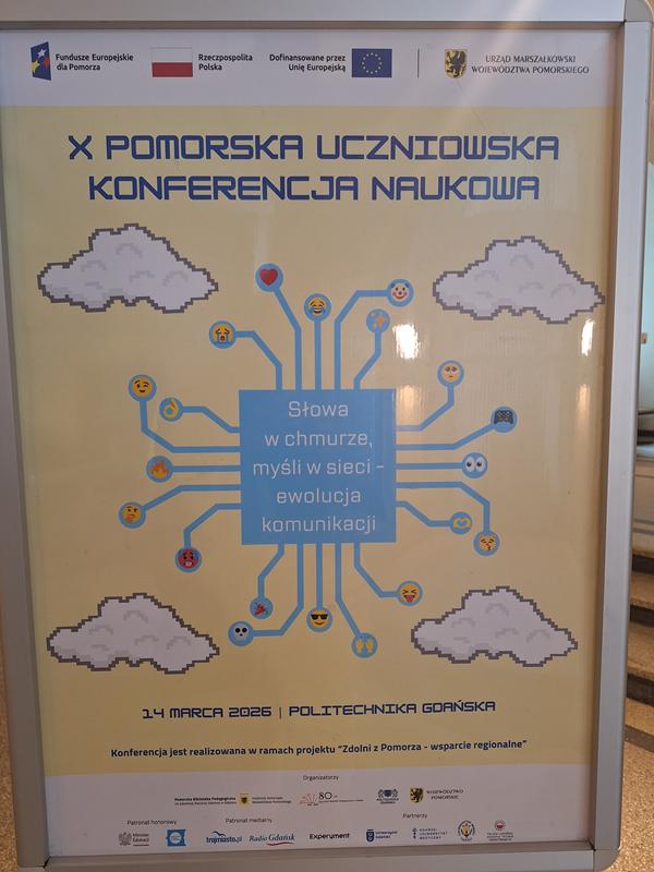 Dnia 14 marca 2026r. uczniowie z koła młodego chemika wraz z nauczycielem Aleksandrą Janowitz-Chećko uczestniczyli po raz trzeci w Uczniowskiej Konferencji Naukowej " Słowa w chmurze, myśli w sieci - ewolucja komunikacji". Spotkanie zaczęło się od wykładu prof.  PG, który opowiedział o tym, jak wygląda komunikacja werbalna i niewerbalna z perspektywy neurobiologii. Następnie wysłuchaliśmy referatów z dziedziny nauk biologiczno-chemicznych, które przedstawiali uczniowie z różnych szkół, w tym nasza absolwentka Beata Dibowska, która na konferencji wystąpiła już po raz drugi. W przerwie między wystąpieniami młodzież mogła zapoznać się z posterami oraz ofertą gościnnych wystawców – szkół wyższych i ich kół naukowych, m.in. Politechniki Gdańskiej, Gdańskiego Uniwersytetu Medycznego, Uniwersytetu Morskiego w Gdyni czy Polsko-Japońskiej Akademii Technik Komputerowych. Był to kolejny dzień efektywnie spędzony z nauką, możliwość wymiany zdań i doświadczeń, wszyscy wrócili bardzo zadowoleni, z nowymi doświadczeniami edukacyjnymi. Konferencja realizowana jest w ramach unijnego projektu "Zdolni z Pomorza".