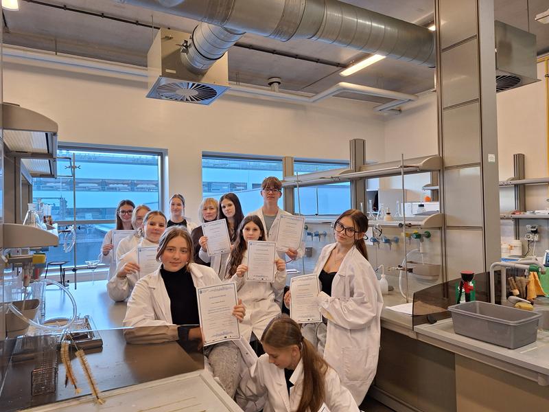 Uczniowie Koła Młodego Chemika wraz z opiekunem Aleksandrą Janowitz-Chećko uczestniczyli w spotkaniu akademickim  dnia 22 listopada 2025r. na Uniwersytecie Gdańskim. Tematem zajęć była  "Niezwykła chemia zwykłych pierwiastków i ich związków". Spotkanie zaczęło się od wykładu, następnie uczestniczyliśmy w seminarium, podczas którego uczniowie aktywnie odpowiadali na zadane pytania. Najprzyjemniejszą częścią dnia byly 3-godzinne warsztaty laboratoryjne, gdzie młodzież pod opieką prowadzącego samodzielnie wykonywała doświadczenia chemiczne. Młodzi chemicy nabyli nowe umiejętności i wrócili bardzo zadowoleni.