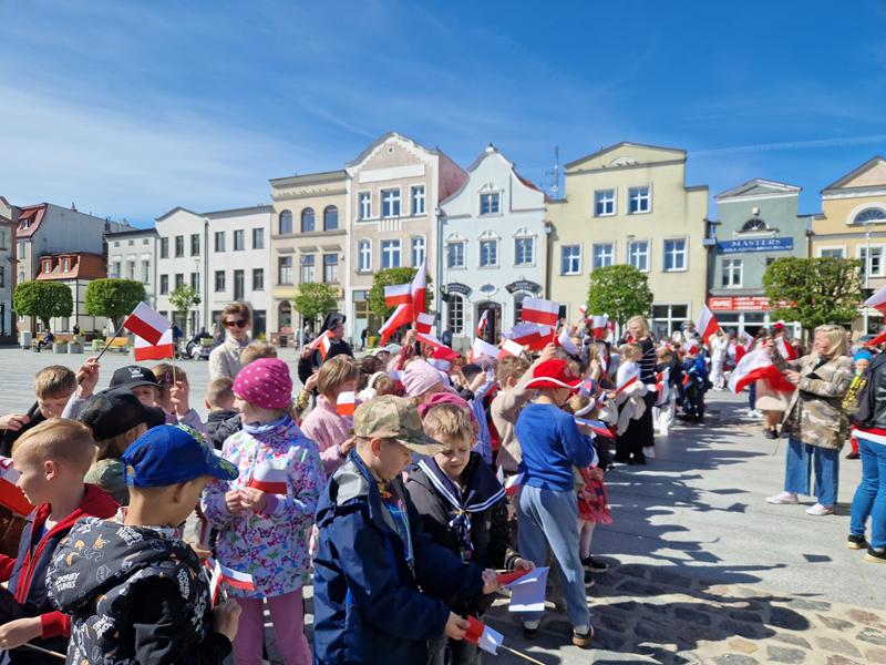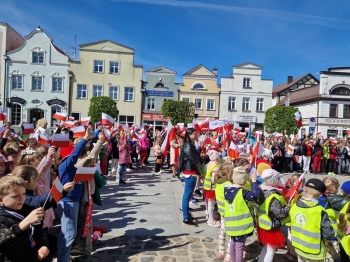 Odbył się pokaz  filmu edukacyjnego  „Majowe Święta” oraz „Puck w starym kadrze”. Następnie każdy uczeń z klas 1-3 wykonał samodzielnie  flagę państwową, a klasy 4-8 tworzyły krzyżówki z hasłem Rzeczpospolita oraz układały z  wyrazów Rzeczpospolita Polska jak najwięcej słów.  Potem na puckim stadionie  wszyscy wspólnie odśpiewali hymn państwowy.  Odbyły się biegi sztafetowe z flagą dla uczniów klas 4-8, a  wychowawcy klas 1-3 wraz z wychowankami udali się na przemarsz  ulicami Pucka, podczas którego dzieci rozdawały  przechodniom flagi, zachęcając do umieszczenia ich w widocznym miejscu w swoich domach. Pogoda i humory dopisywały, a obchody Dnia Flagi miały nie tylko charakter edukacyjny i patriotyczny, ale okazały się też dobrą zabawą