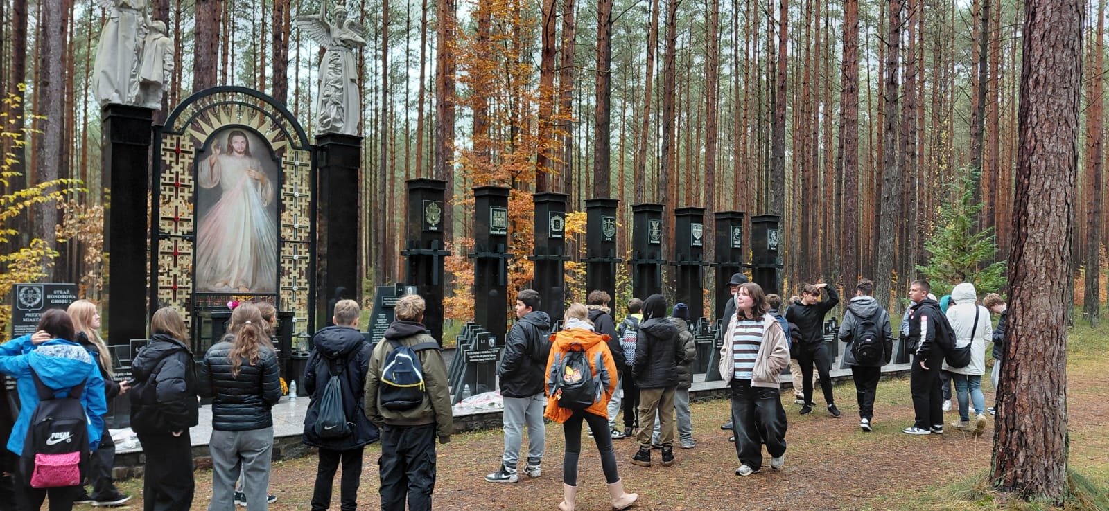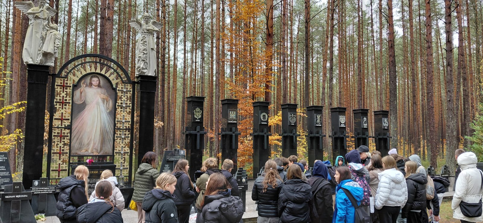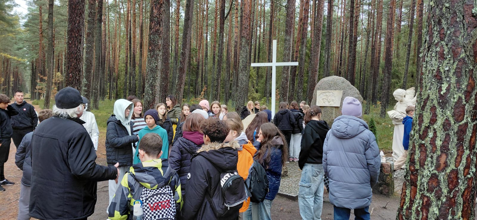 Uczniowie naszej szkoły mieli okazję wziąć udział w praktycznej lekcji historii. Najpierw zwiedzili Muzeum Piaśnickie w Wejherowie, gdzie pan Dariusz Bąkowski oprowadził ich po wystawach, a następnie obejrzeli filmy archiwalne na temat tworzenia się nowego państwa polskiego po odzyskaniu niepodległości oraz zbrodni w Lasach Piaśnickich. Potem udali się do kościoła pod wezwaniem Chrystusa Króla, w którym znajduje się kaplica upamiętniająca  pomordowanych w Piaśnicy. Zwieńczeniem tej niezwykłej lekcji była wizyta w miejscach mordu w Lesie Piaśnickim oraz zapalenie zniczy na symbolicznych zbiorowych mogiłach.