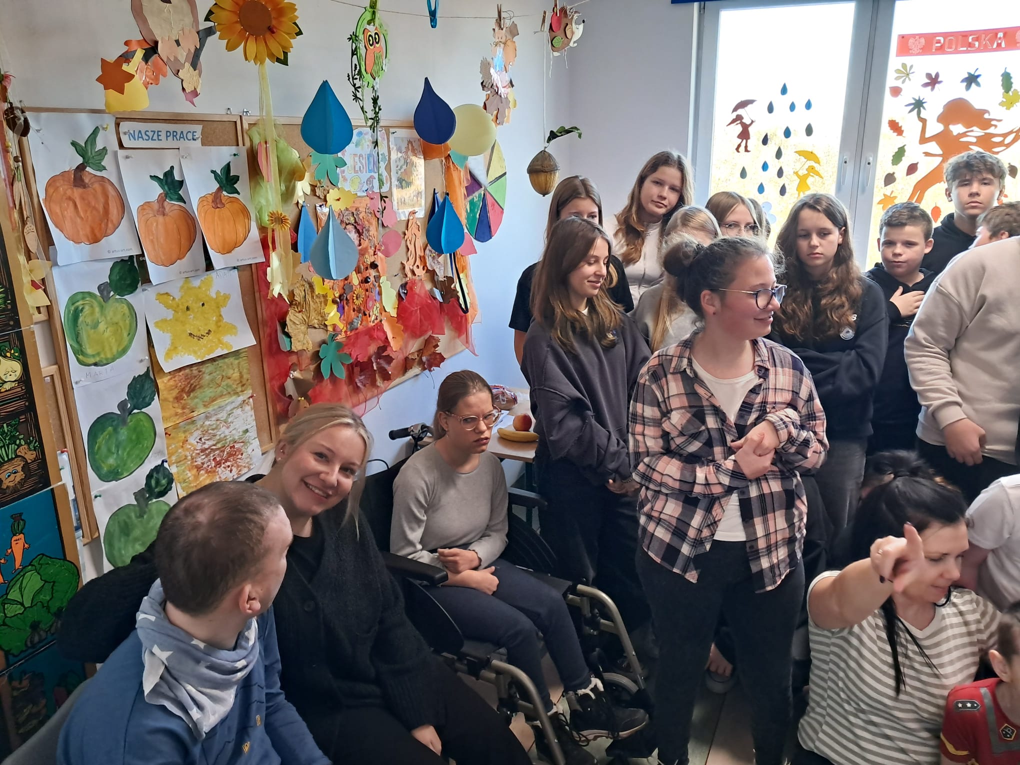 W dniu 6 listopada 2025 r. odbyło się  spotkanie w ramach stałej współpracy uczniów klasy 7D z uczniami Specjalnego Ośrodka Szkolno-Wychowawczego.