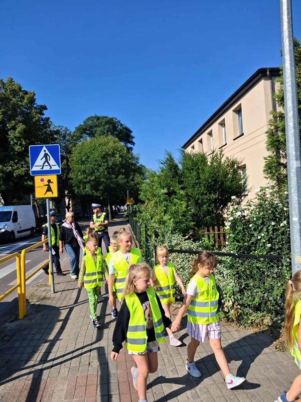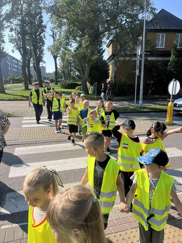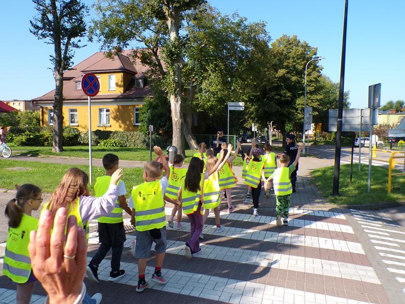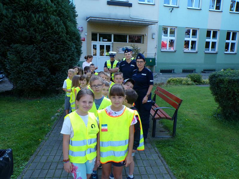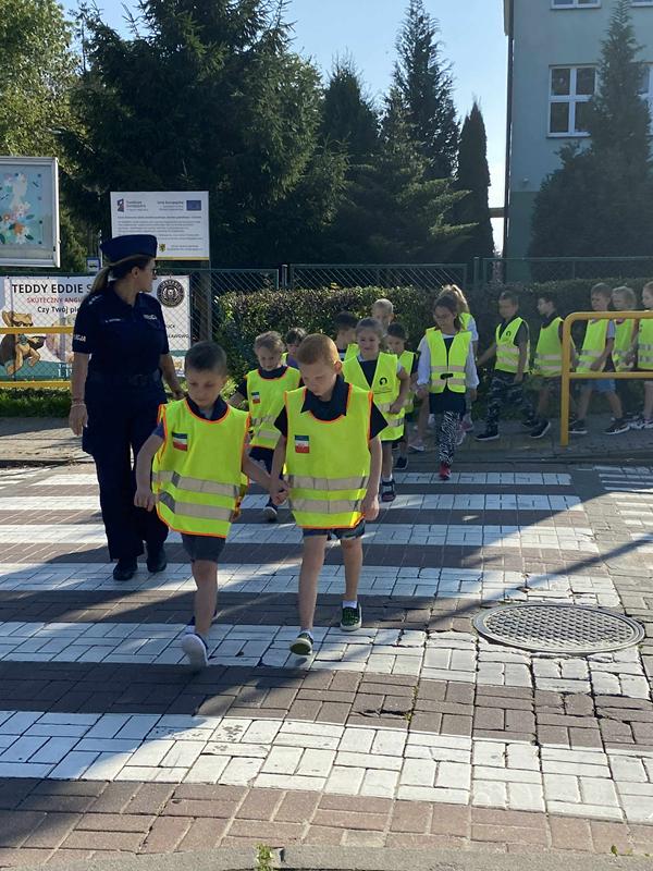 dla  pieszych zlokalizowanych w pobliżu budynku  szkoły. Oprócz tego dzieci dowiedziały się na jakie niebezpieczeństwa na drodze