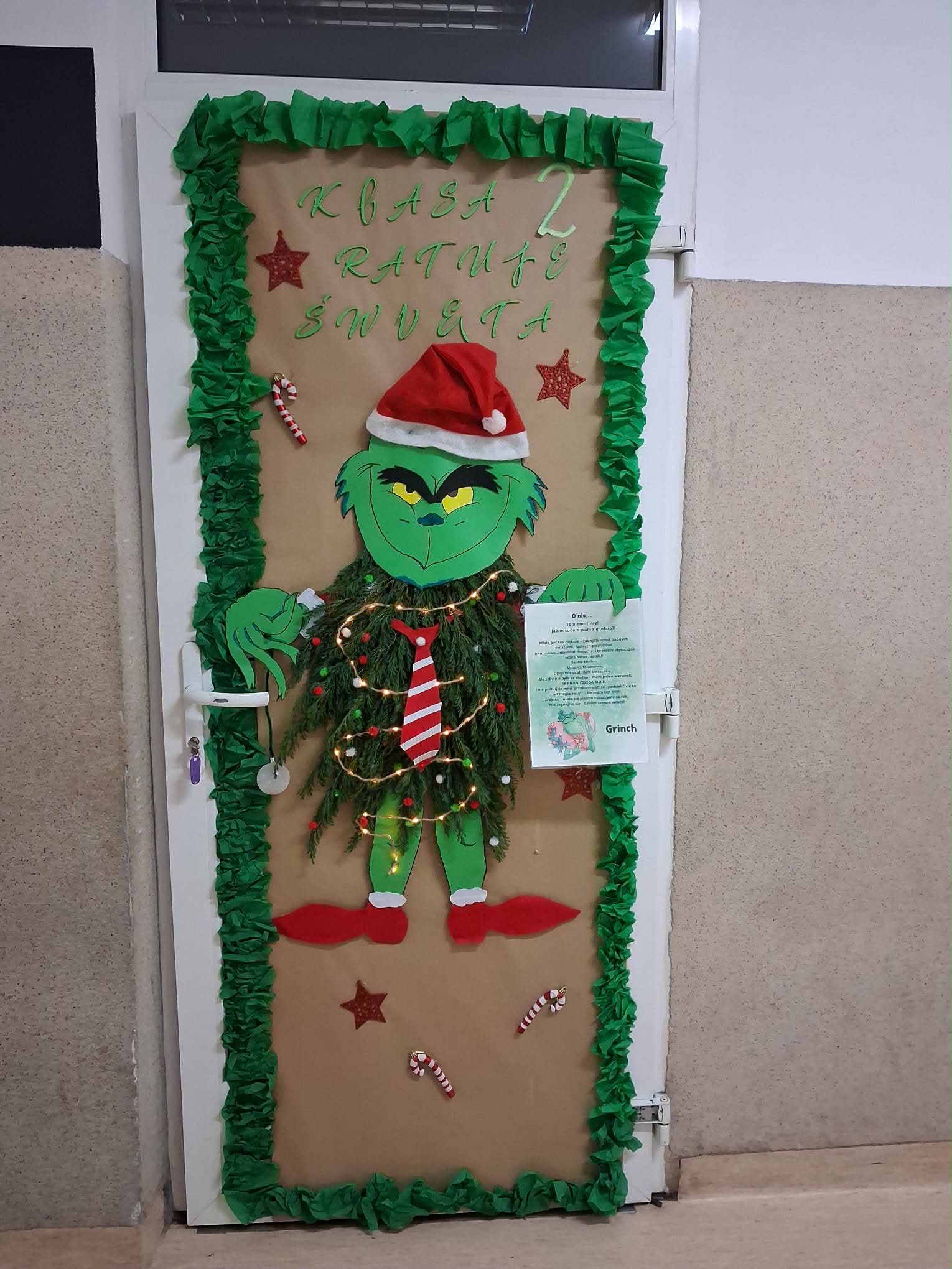 W miesiąc grudniu odbył się konkurs na najpiękniej przystrojone świąteczne drzwi. Konkurs został przeprowadzony przez Samorząd Uczniowski i cieszył się bardzo dużym zainteresowaniem. Wzięło w nim udział wiele klas, które z zaangażowaniem przygotowały swoje dekoracje, wprowadzając  do szkoły wyjątkową magię świąt. Kolorowe ozdoby, świąteczne motywy oraz pomysłowe aranżacje sprawiły, że korytarze nabrały ciepłego, radosnego charakteru. Dzieci z entuzjazmem podziwiały wystrój szkoły, który bardzo im się podobał.