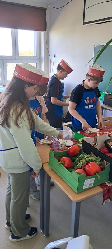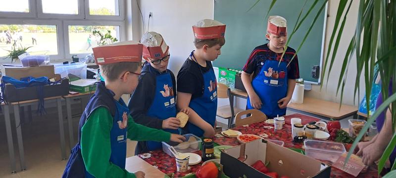 W dniu 20. 05. 2025 w SP w budynku A dla klas piątych odbyły się warsztaty kulinarne. Dzieci mialy okazję poznać zdrowy sposób odżywiania się.  Mogły zapoznać się z różnymi produktami mającymi dużo wartości odżywczych. Na koniec dzieci mogły przygotować sobie zdrową kanapkę.  Klasy 5d i 5e byly bardzo zadowolone.