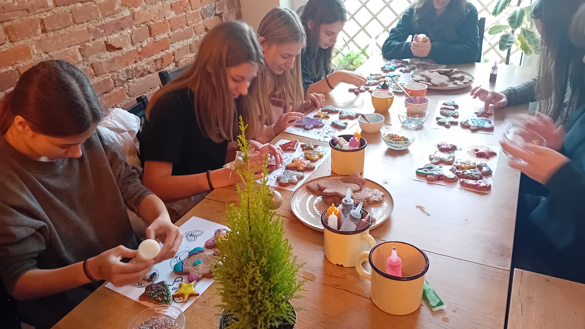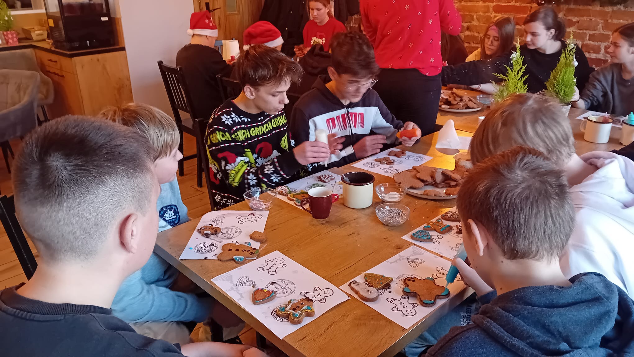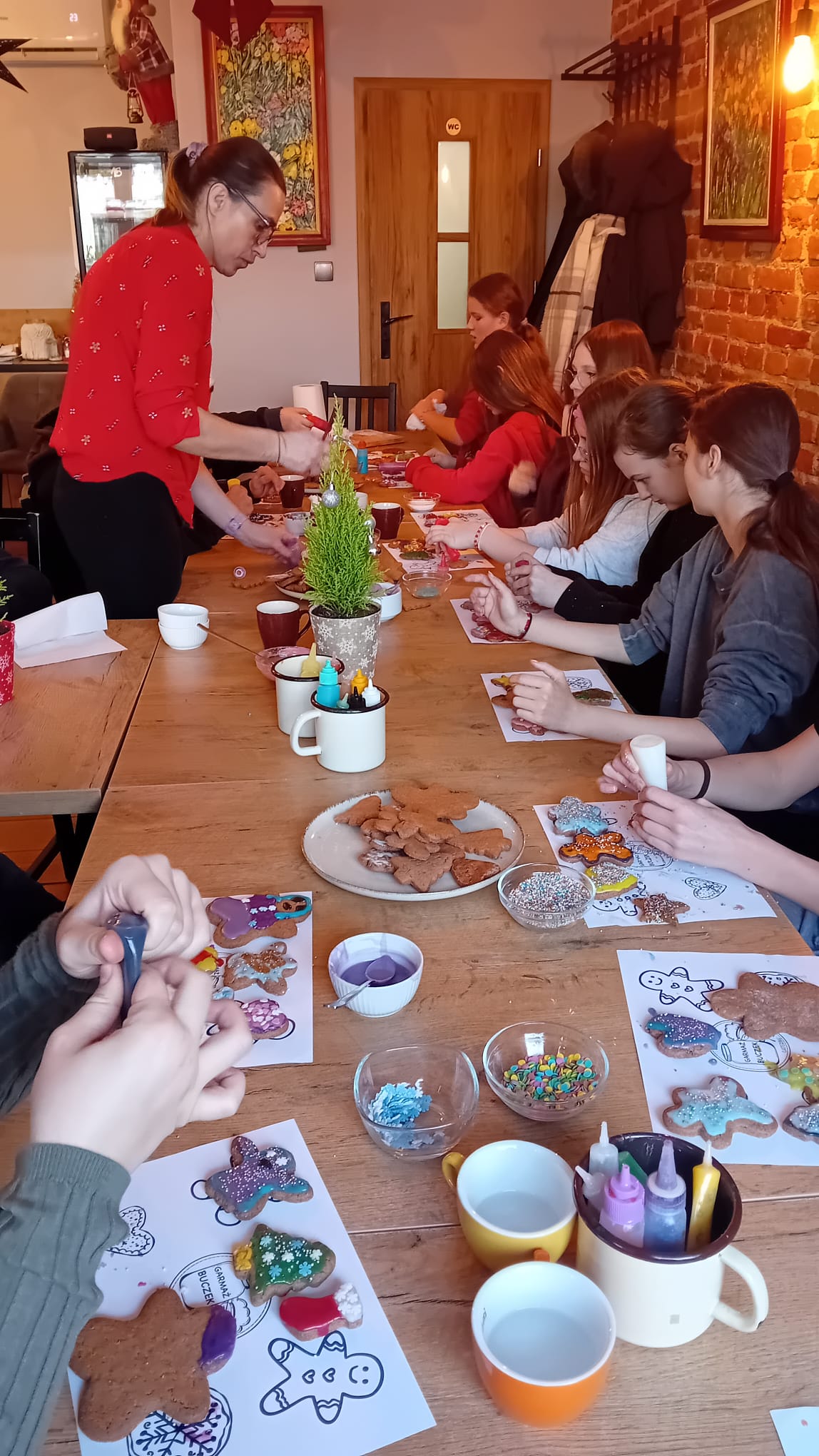 Aby poczuć zbliżające się święta, klasa 7d wzięła udział w warsztatach ozdabiania pierników w " Garmażu Buczek". Było czuć prawdziwą magię świąt - wspólne śpiewanie kolęd, dekorowanie pierników oraz integracja klasy stworzyła miłą, świąteczną atmosferę.