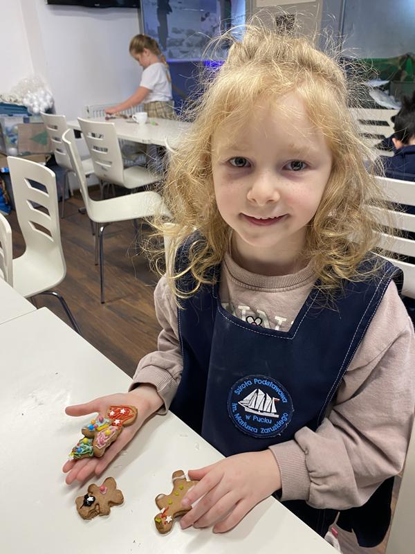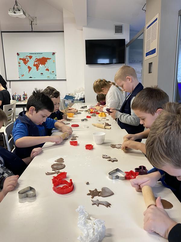 W świątecznym nastroju uczniowie klasy 1b uczestniczyli w warsztatach piernikarskich w Muzeum Ziemi Puckiej. Dzieci wałkowały ciasto, wykrawały kształty, piekły i ozdabiały własne pierniki, świetnie się przy tym bawiąc.