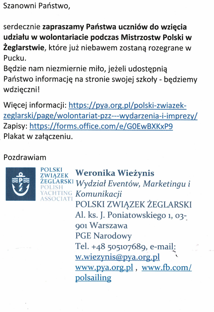 Wolontariat podczas mistrzostw Polski w żeglarstwie