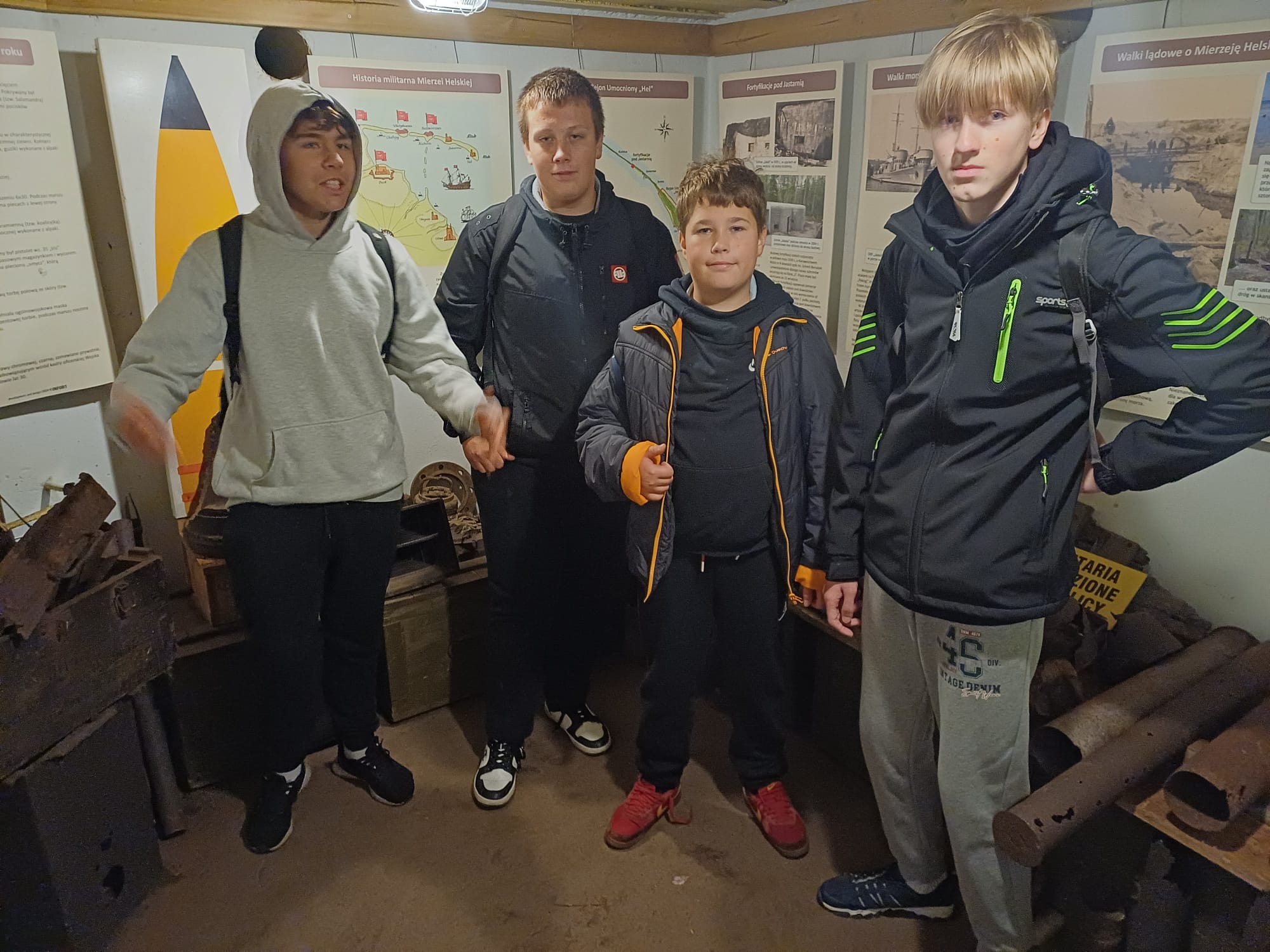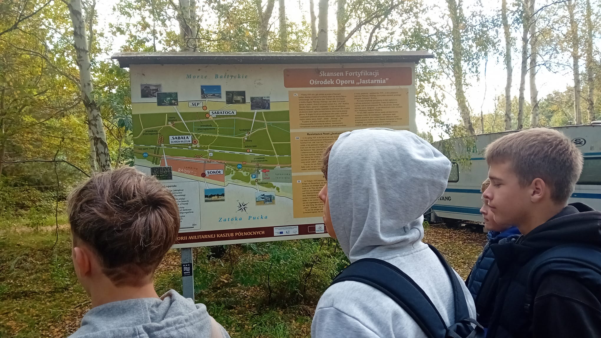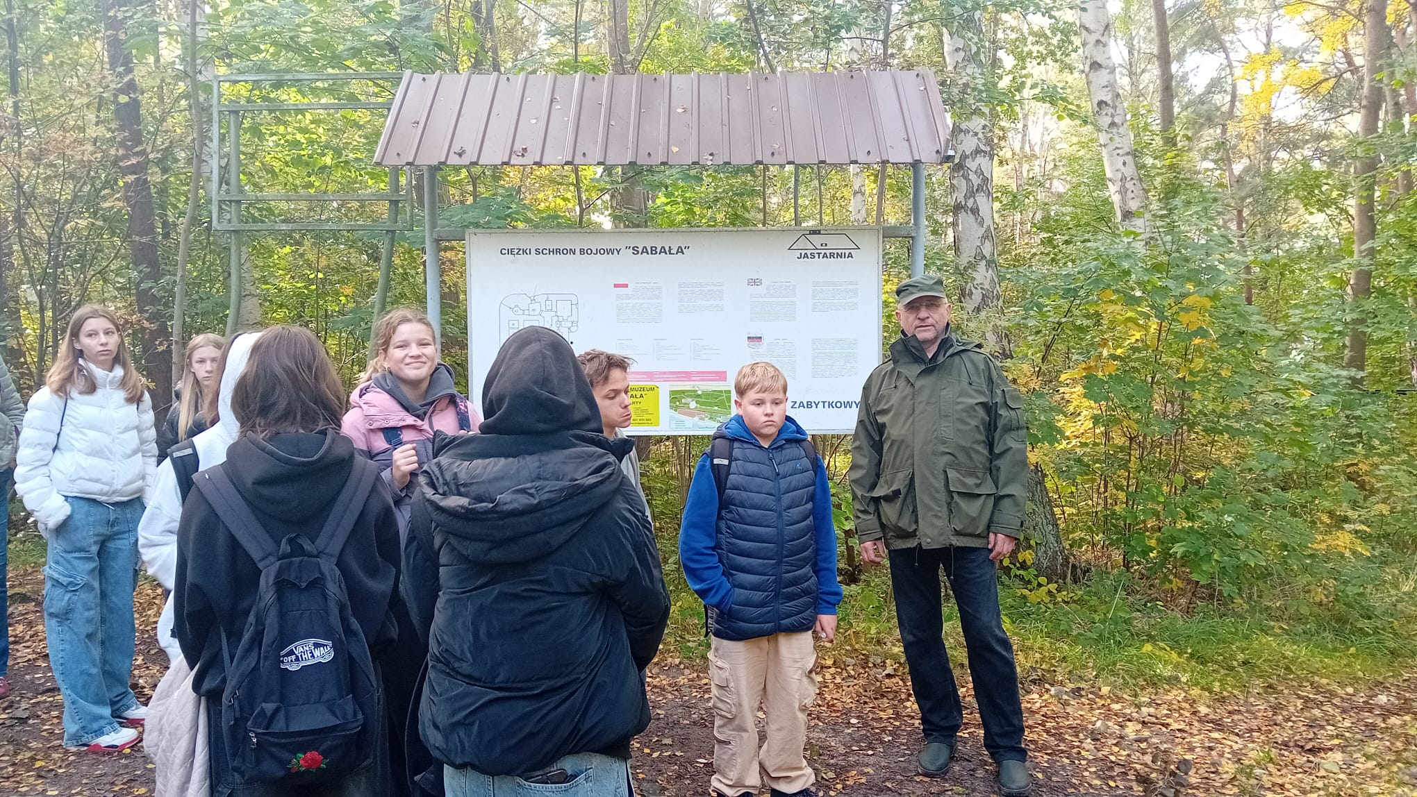 Klasa 7D w dniu 15.10.2025r. zwiedziła Skansen Fortyfikacji - Ośrodek Oporu " Jastarnia". Kompleks obejmuje cztery główne schrony: " Sokoł", " Sabała", " Sęp" i " Saratoga", otoczone licznymi umocnieniami oraz lekkimi schronami bojowymi. Uczniowie dowiedzieli się wielu ciekawych informacji historycznych i techniczno - wojskowych, a także zwrócono uwagę na wpływ warunków naturalnych na stan zachowania schronów.