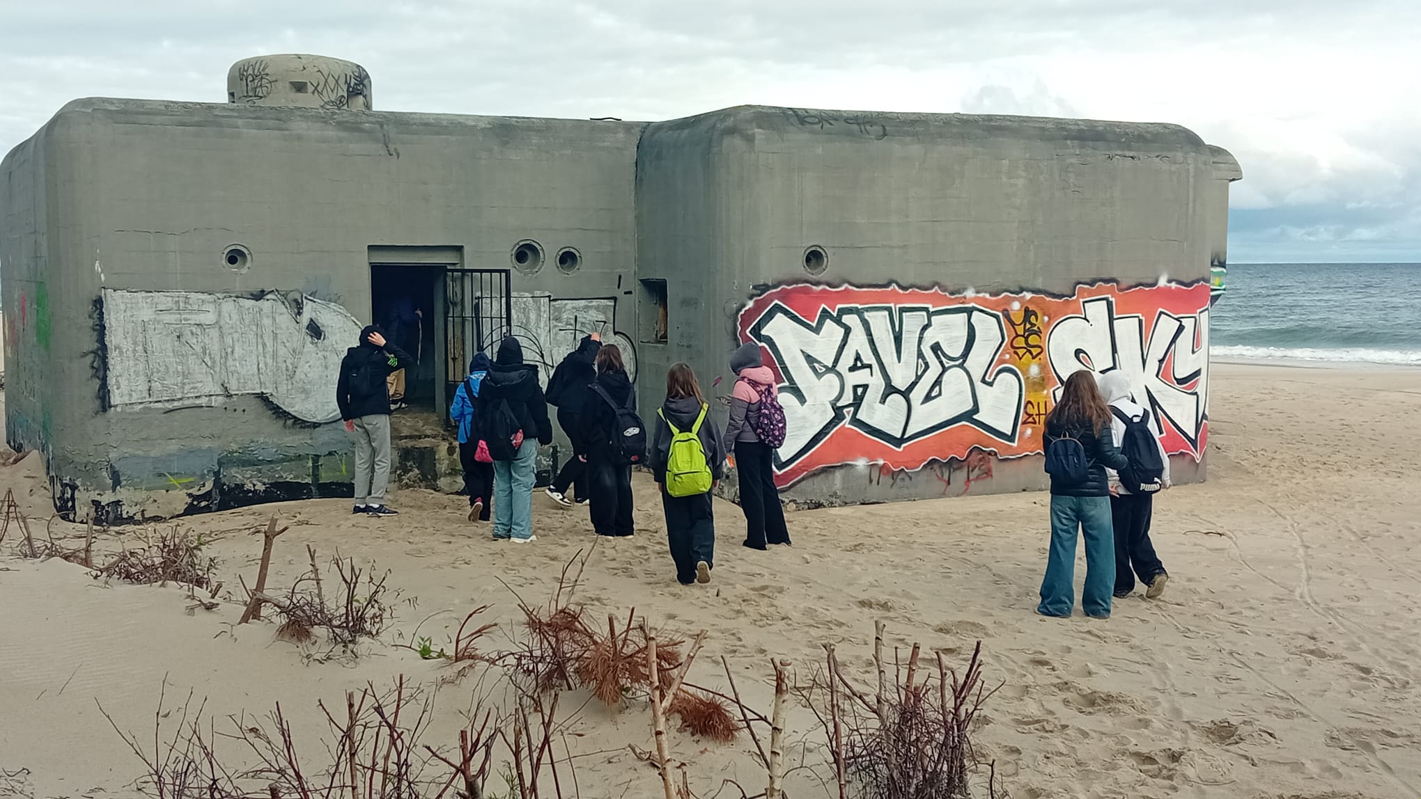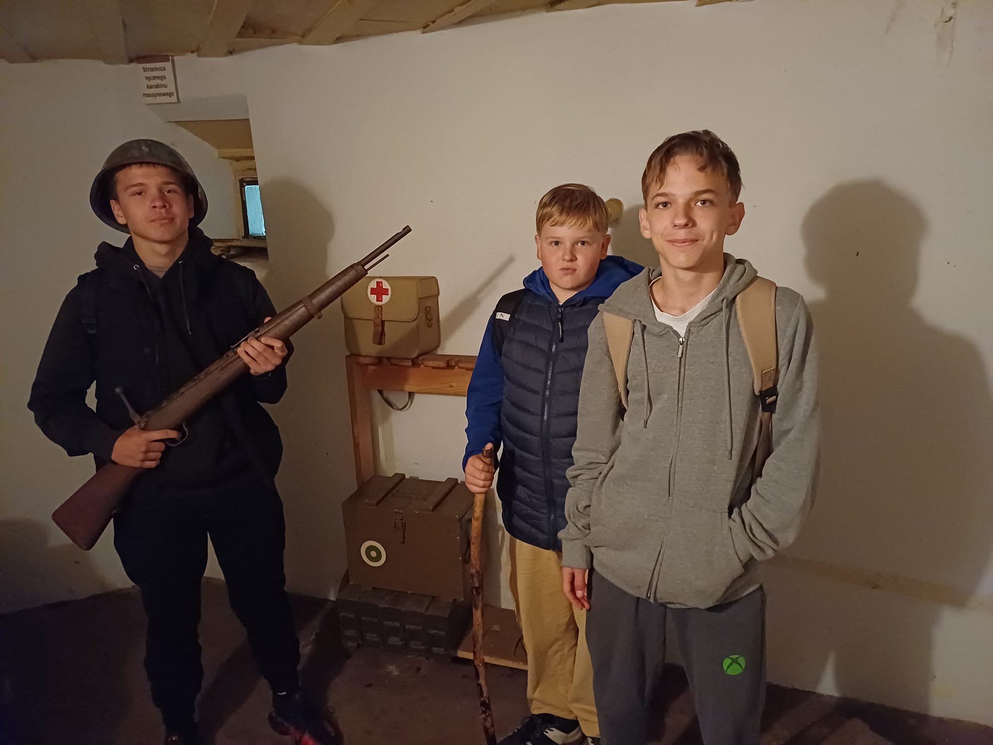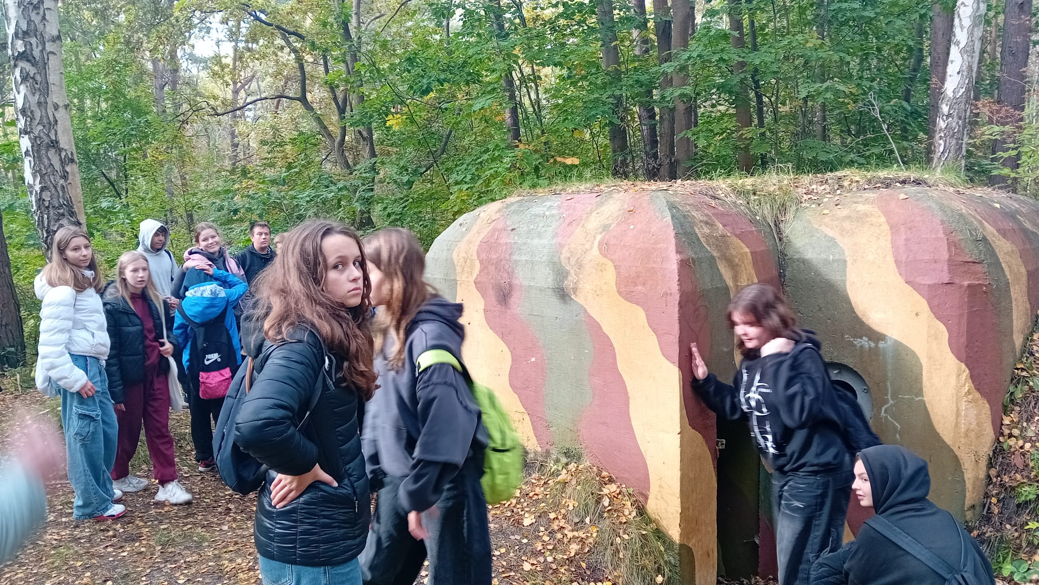 Klasa 7D w dniu 15.10.2025r. zwiedziła Skansen Fortyfikacji - Ośrodek Oporu " Jastarnia". Kompleks obejmuje cztery główne schrony: " Sokoł", " Sabała", " Sęp" i " Saratoga", otoczone licznymi umocnieniami oraz lekkimi schronami bojowymi. Uczniowie dowiedzieli się wielu ciekawych informacji historycznych i techniczno - wojskowych, a także zwrócono uwagę na wpływ warunków naturalnych na stan zachowania schronów.
