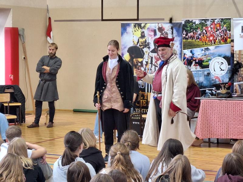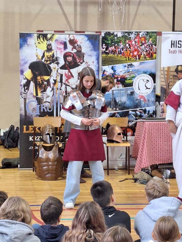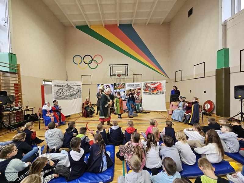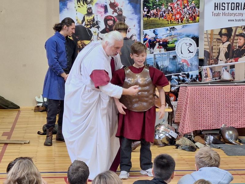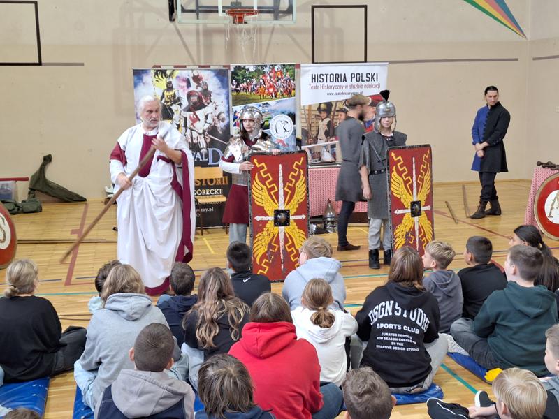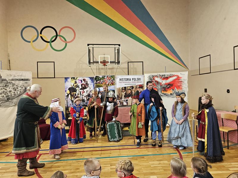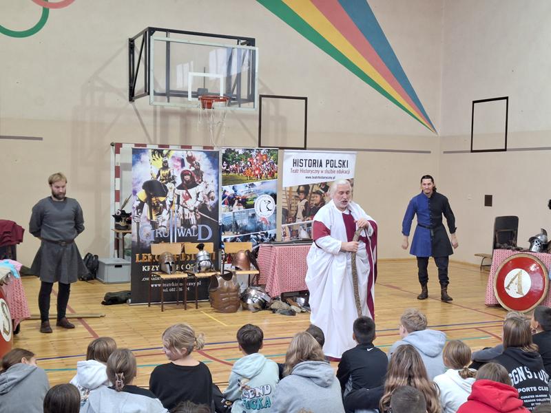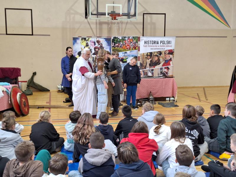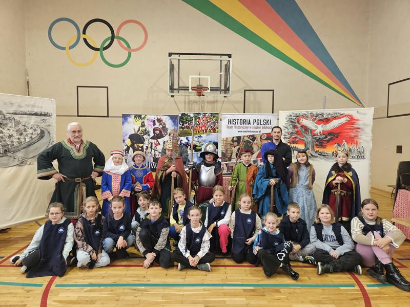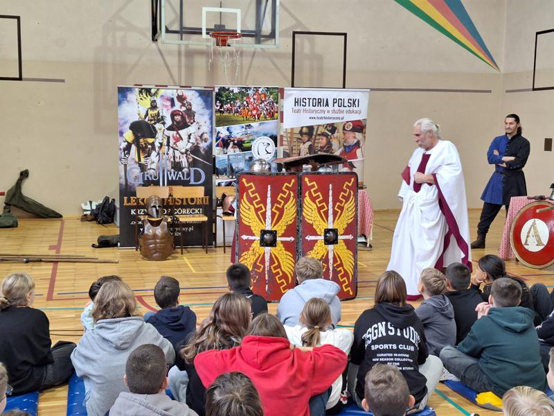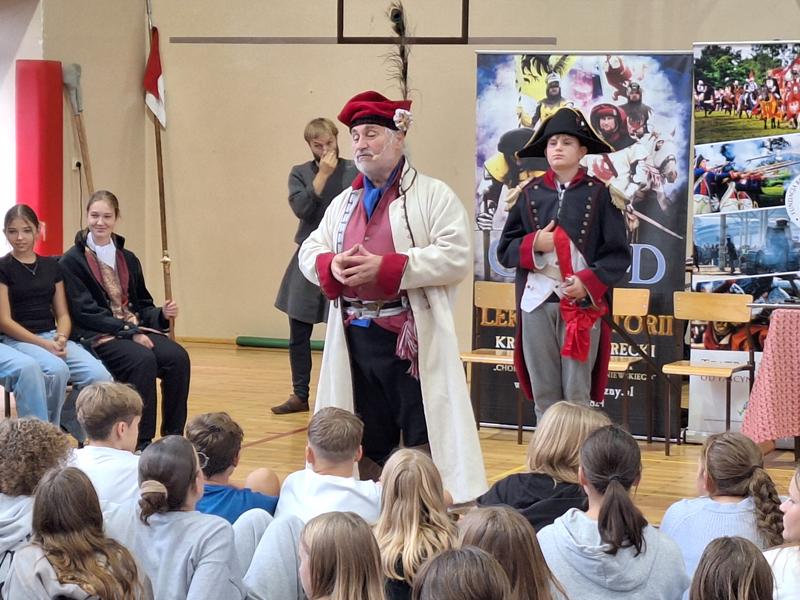 30 października 2025 uczniowie klas 3-8 Szkoły Podstawowej im. M. Zaruskiego przenieśli się w odległe czasy. Wszystko to za sprawą ,,Żywych lekcji historii'', którą poprowadził pasjonata historii Krzysztof Górecki. Klasy 3 mogły posłuchać o początkach państwa polskiego, klasy 4-6 odwiedziły starożytną Grecję i Rzym a klasy 7-8 zdobywały wiedzę o trudnym dla Polaków wieku XIX. Uczniowie mogli założyć stroje ,zobaczyć uzbrojenie i poczuć klimat omawianej epoki. Słuchali z zainteresowaniem barwnych opowieści, bawili się, śmiali i zdobywali wiedzę historyczną. Przeżyli niezapomnianą przygodę i przekonali się, że historia może być ciekawa.                                                                                                       Wioleta Moszkowicz
