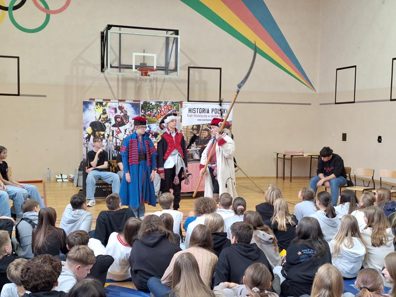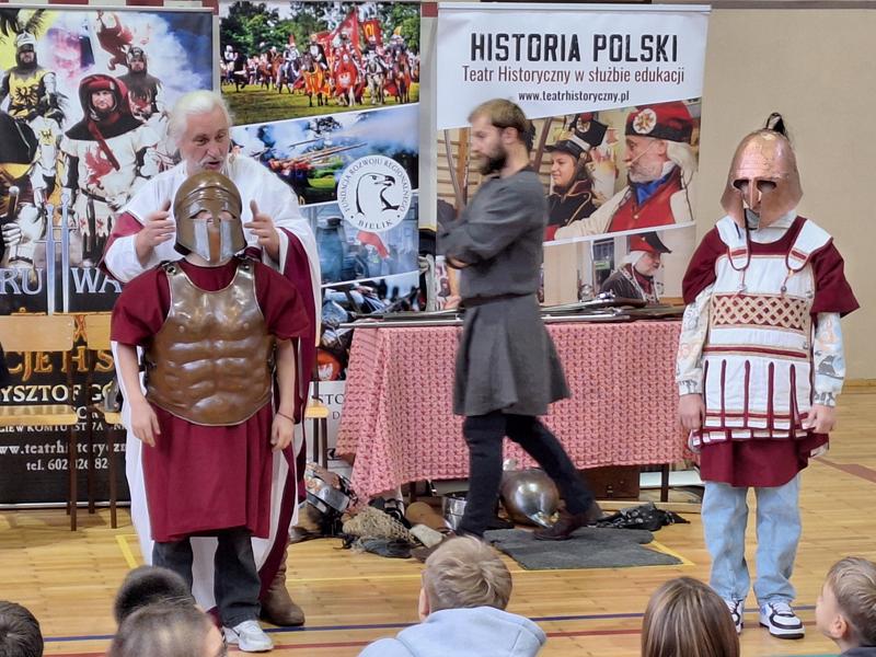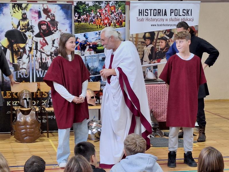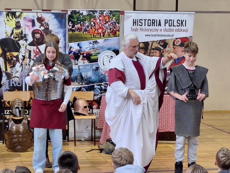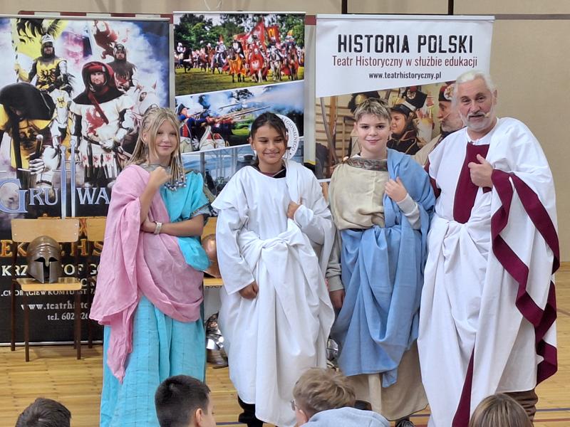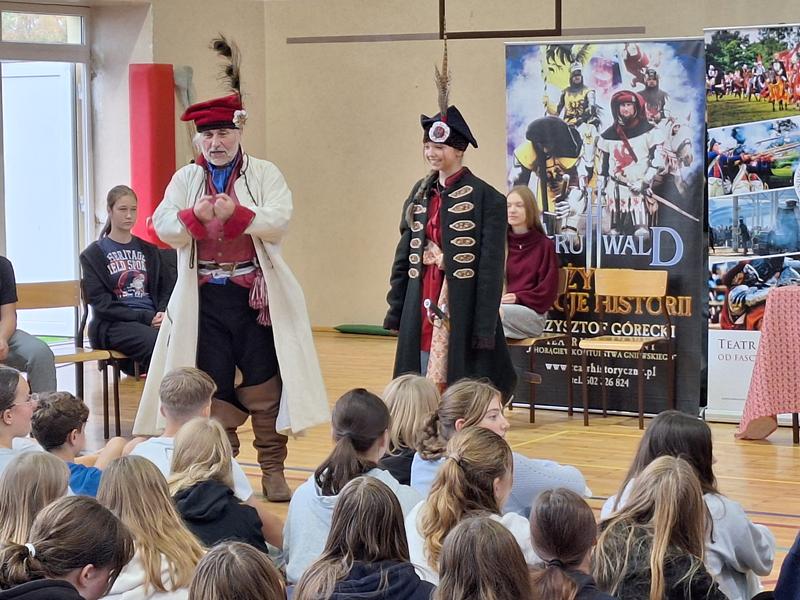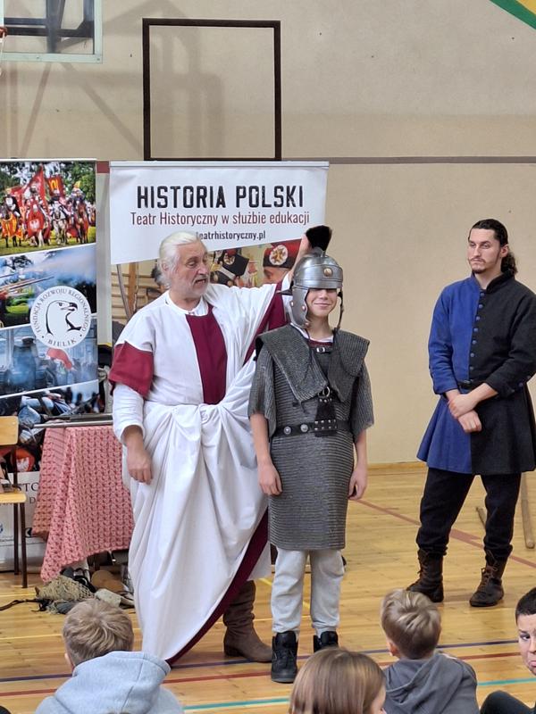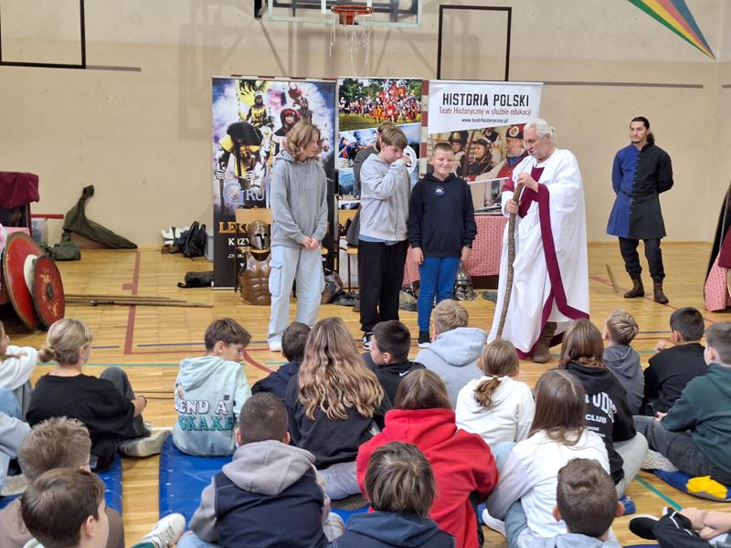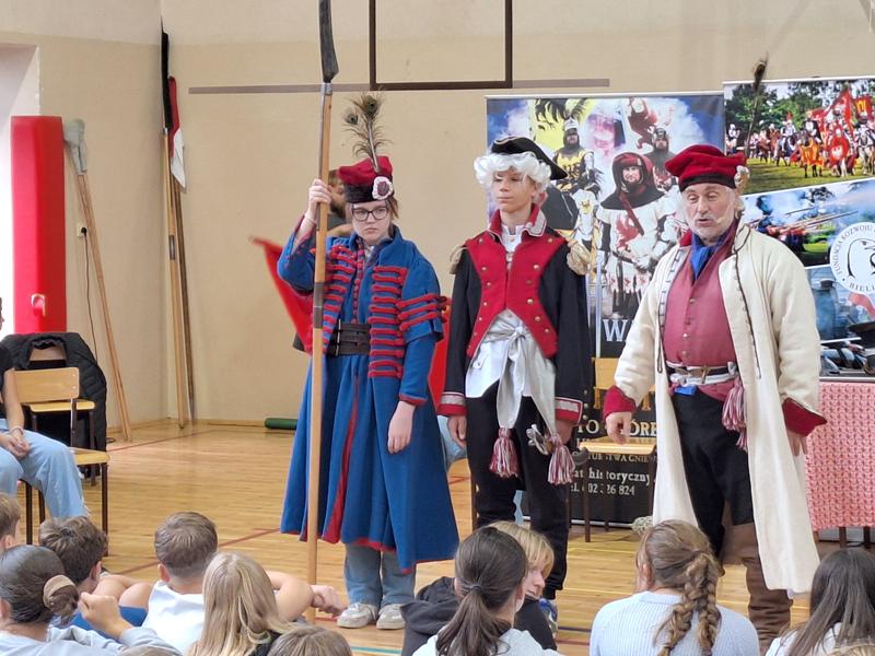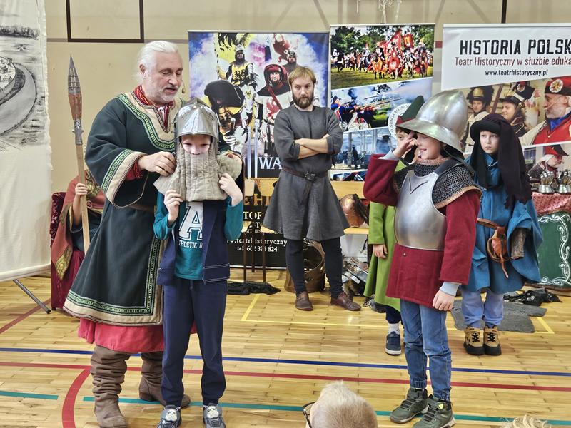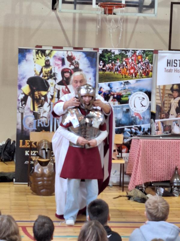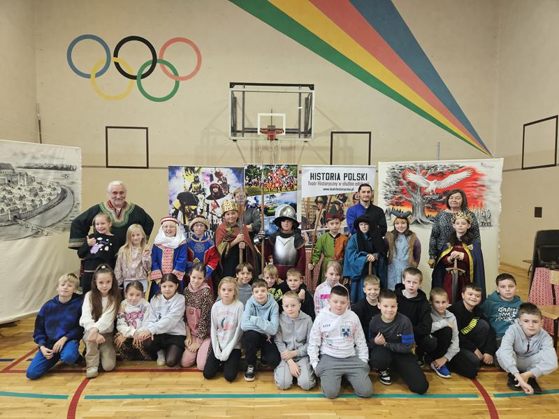 30 października 2025 uczniowie klas 3-8 Szkoły Podstawowej im. M. Zaruskiego przenieśli się w odległe czasy. Wszystko to za sprawą ,,Żywych lekcji historii'', którą poprowadził pasjonata historii Krzysztof Górecki. Klasy 3 mogły posłuchać o początkach państwa polskiego, klasy 4-6 odwiedziły starożytną Grecję i Rzym a klasy 7-8 zdobywały wiedzę o trudnym dla Polaków wieku XIX. Uczniowie mogli założyć stroje ,zobaczyć uzbrojenie i poczuć klimat omawianej epoki. Słuchali z zainteresowaniem barwnych opowieści, bawili się, śmiali i zdobywali wiedzę historyczną. Przeżyli niezapomnianą przygodę i przekonali się, że historia może być ciekawa.                                                                                                       Wioleta Moszkowicz