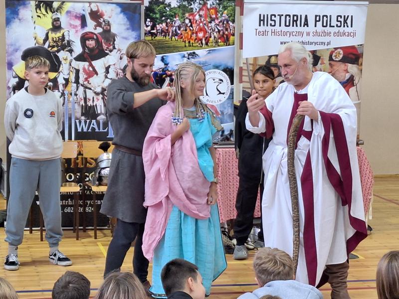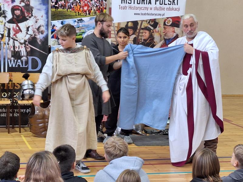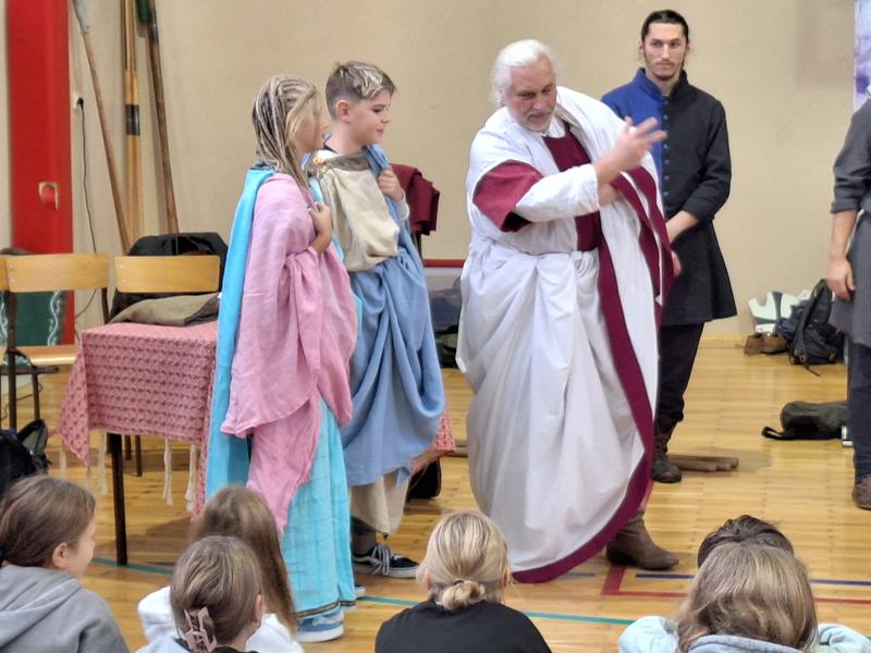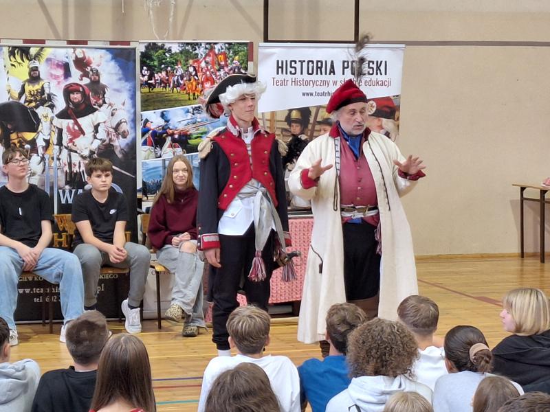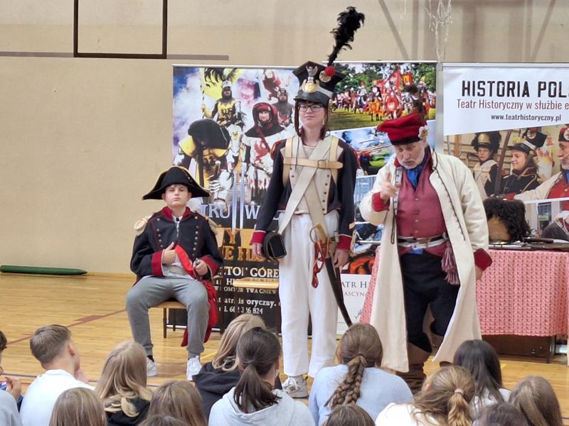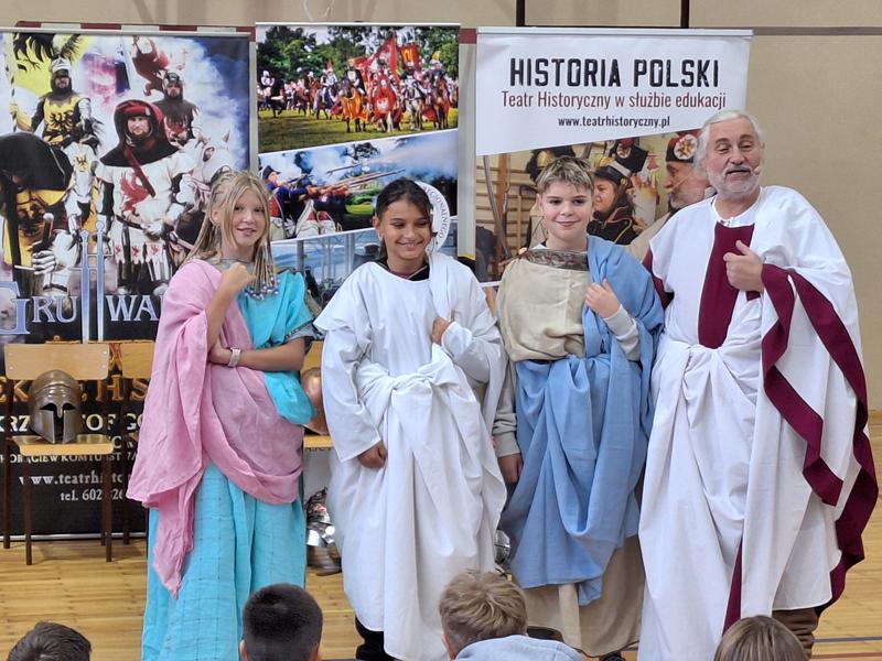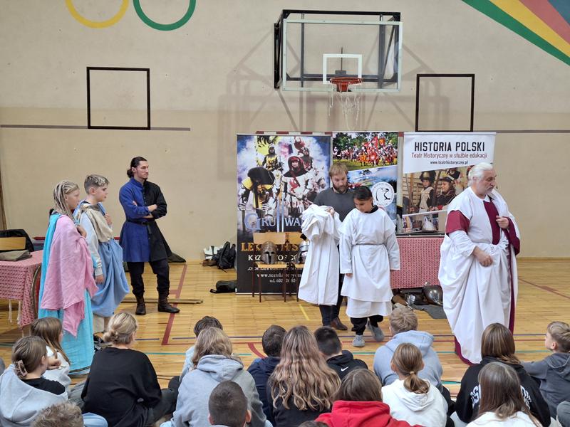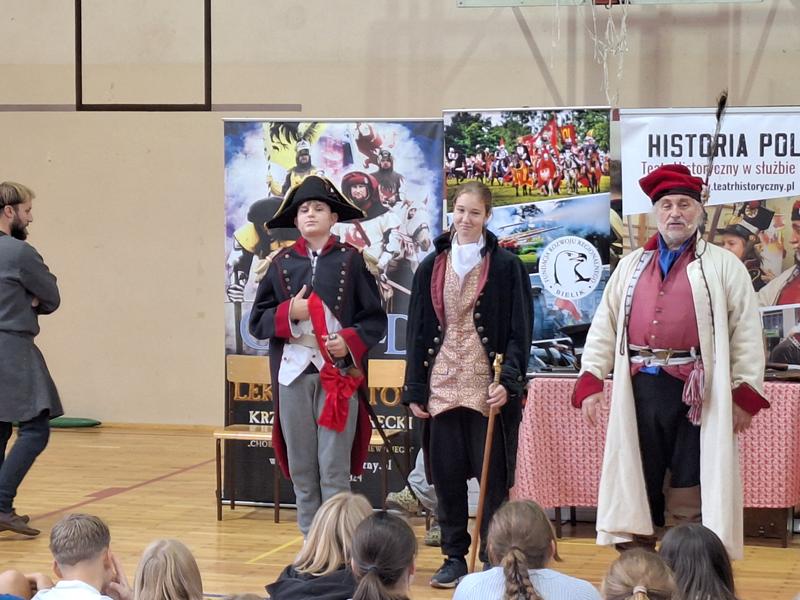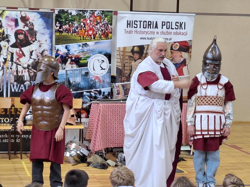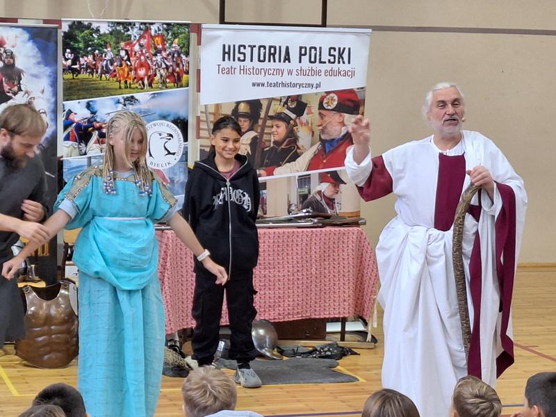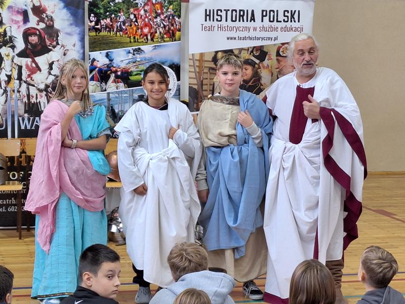 30 października 2025 uczniowie klas 3-8 Szkoły Podstawowej im. M. Zaruskiego przenieśli się w odległe czasy. Wszystko to za sprawą ,,Żywych lekcji historii'', którą poprowadził pasjonata historii Krzysztof Górecki. Klasy 3 mogły posłuchać o początkach państwa polskiego, klasy 4-6 odwiedziły starożytną Grecję i Rzym a klasy 7-8 zdobywały wiedzę o trudnym dla Polaków wieku XIX. Uczniowie mogli założyć stroje ,zobaczyć uzbrojenie i poczuć klimat omawianej epoki. Słuchali z zainteresowaniem barwnych opowieści, bawili się, śmiali i zdobywali wiedzę historyczną. Przeżyli niezapomnianą przygodę i przekonali się, że historia może być ciekawa.                                                                                                       Wioleta Moszkowicz